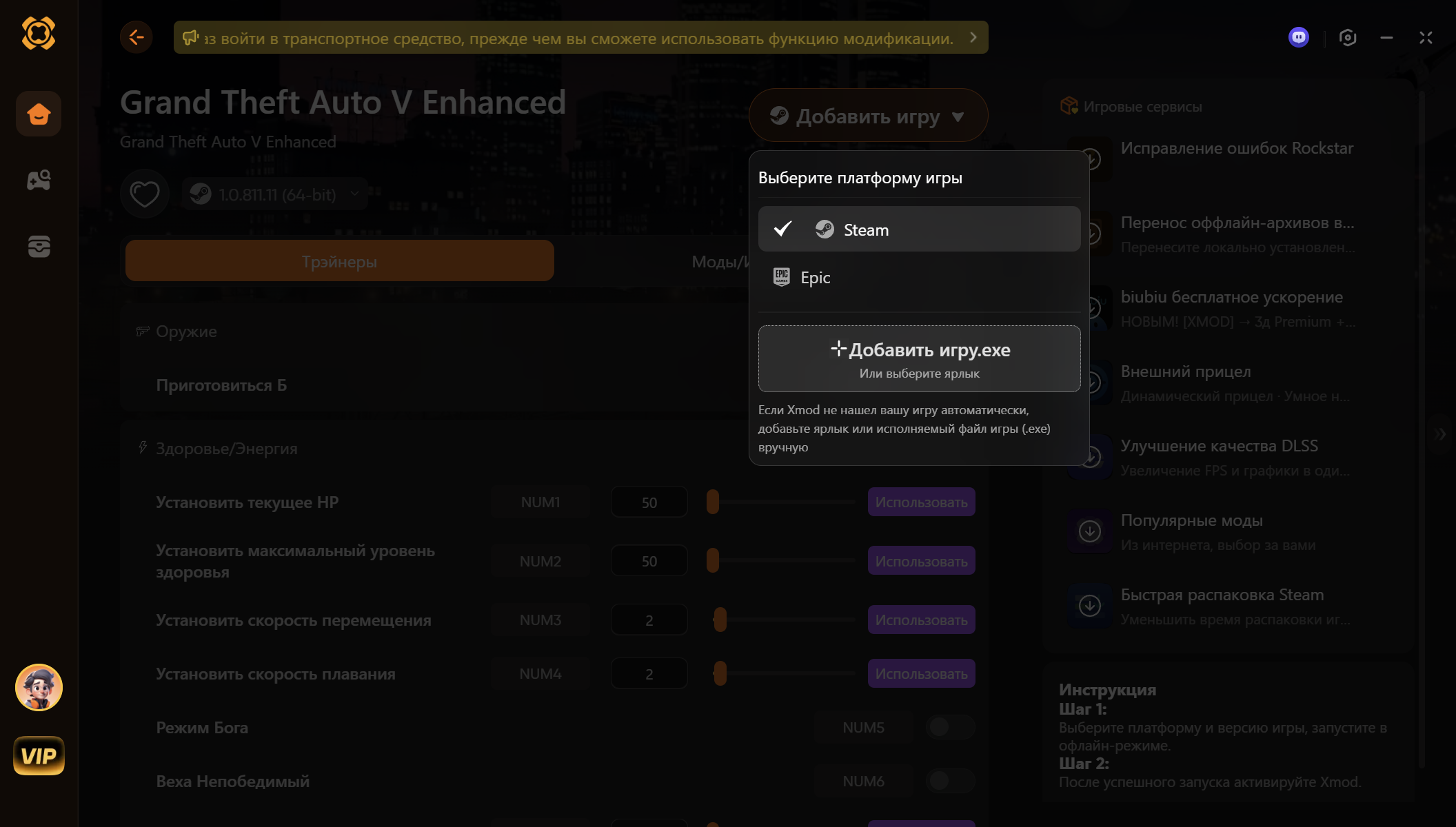 Антивирус: xModHub и моды могут ложно определяться как угрозы. Добавьте папки GTA V и xModHub в исключения.